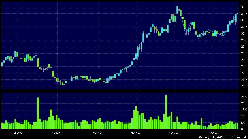 Disclaimer:The information, financial market data, quotes, charts, statistics and / or various technical analysis indicators are automatically generated based on the analyses and interpretations of publicly available information and should be used as references only at your own discretion. Such automatically generated content does not reflect the views or opinions of AASTOCKS.com Limited nor does AASTOCKS.com Limited make any guarantees to their accuracy, completeness, timeliness or correctness. You are advised to consult independent professional advice to verify pricing information or to obtain more detailed market information. Any uses of information or trades executed following the said automatically generated content are taken at your own risk for your own account.