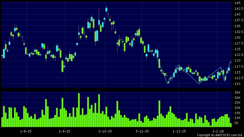 JD-SW(09618.HK) shows a triple bottom reversal. Last printed at 119.300; rose 2.053%; on volume of 4.83M shares and turnover of $577.31MRecent PerformanceIn 3 days: +6.804%In 5 day...