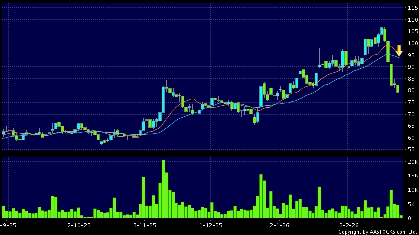 死亡交叉是一个利淡信号,指股价的短期移动平均线跌穿长期移动平均线,例如50天线跌穿250天线,在图表上构成交叉的形状。股价通常会下跌形成一个下降趋势,技术走势偏软。(港股报价延迟最少十五分钟。沽空资料截至 2026-02-27 16:25。)