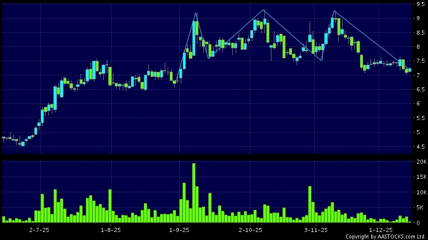 三重頂指股票上升至三個相近的高位後,開始下跌,然後形成下降趨勢,屬利淡訊號。三個高點成為一個阻力位,難以升破。(港股報價延遲最少十五分鐘。沽空資料截至 2025-12-12 16:25。)