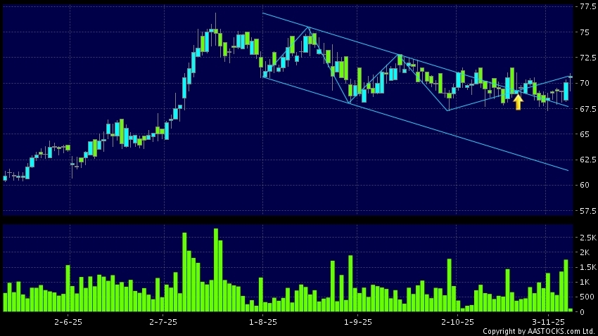 區域突破指股價在過去的一段時間只在一個範圍在內活動,然後股價上升作出突破,升穿區域的頂部,技術走勢向好。(港股報價延遲最少十五分鐘。沽空資料截至 2025-11-21 12:25。)