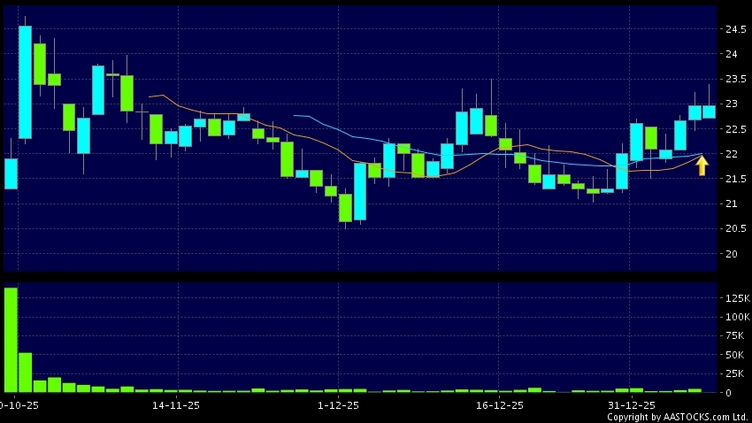 黃金交叉是一個利好訊號,指股價的短期移動平均線升穿長期移動平均線,例如50天線升穿250天線,在圖表上構成交叉的形狀。股價通常會上升形成一個上升趨勢,技術走勢向好。(港股報價延遲最少十五分鐘。)